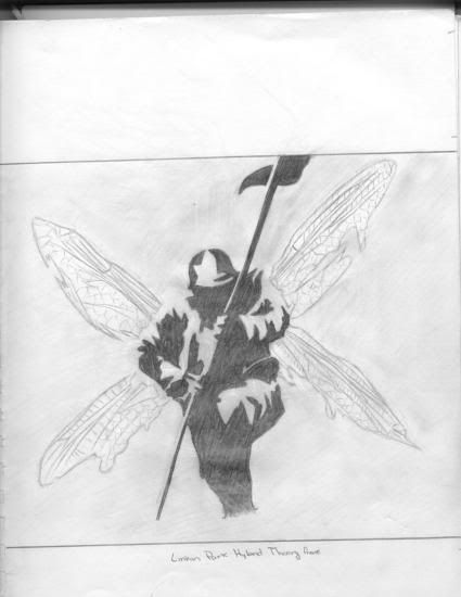 >.< I drew this totally awesome Hybrid Soldier but my mother is in possetion of my sketch book stressed stare