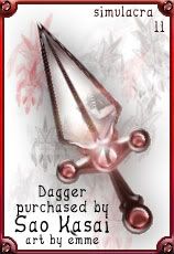 Sao stared wide-eyed. The blur had moved on its own! She blinked a few times and looked again, seeing the same thing, the reflection moving around the edge of the dagger. She put it down and then picked it back up, very confused. Sao almost jumped when the dagger's handle began to shake and move her hand around.