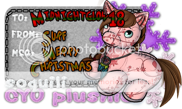 Midnightglow18 S u r f For L o v e Midnightglow18 I HAVE A PLUSH (or two) TO GIVE AWAY!! Method of distribution: Trade Rules for claiming: OPEN Plushie(s) in question 3   Wow pretty ^_^ are you able to cert them for us?? I don't know how to cert >.< course! =D   Hope your ok with my slightly modified cert? =) I can cert anything you need, just quote me. and if you want it more unique just let me know! <3