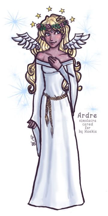 Ardre is still shy, especially when she first meets people, but is very sweet, though naiive. Her apearence isn't always kept, for she is often outside, and burrs with attach themselves to her, and she will have smears of dirt on her cheeks.