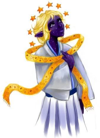 Born: 9.23.04 Gender: Female Guardian: Hoshi Eye color: Clear bue Hair color: Golden Distinguishing markings: Has light, sparkling stars on her skin, and her skin is tinted purple. When she was a child, it was a much darker purple. Favorite Food: Most fruits, especially strawberries, pears, plums, and apples. Favorite Colors: Earthy colors, such as soft gold, brown, green, and occasionally blue. Favorite Pastime: Spending time outside, what she does is a mystery to others.